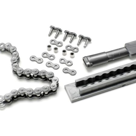 - Includes individual assembly chain links consisting of individual plastic plates and metal spacers
