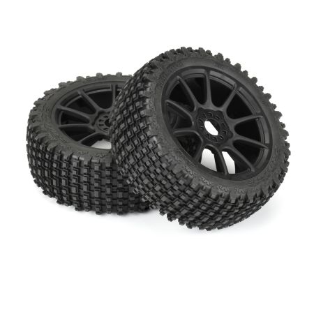 PRO907421 | Gladiator M2 (Medium) All Terrain 1/8 Buggy Tires Mounted on Mach 10 Black 17mm Wheels (2) for Front or Rear