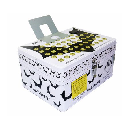 The BAT-SAFE is a double-walled insulated steel box with a flame arrestor. Any battery within the specifications will not be a fire hazard if charged or stored inside the BAT-SAFE.