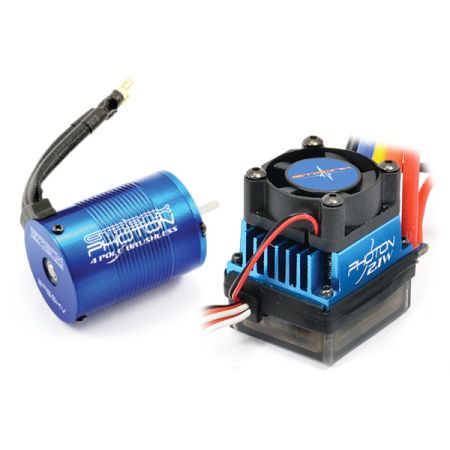 The convenience and performance of brushless technology is available for everyone with the Photon Sensorless Weatherproof System from Etronix. Simple to set-up and with a range of sensible KV rated motors for most r/c car applications and abilities the Photon is the ideal brushless start-up package or upgrade from a stock brushed set-up.An ideal choice for any 1/10th buggy, truggy, short course or truck application.