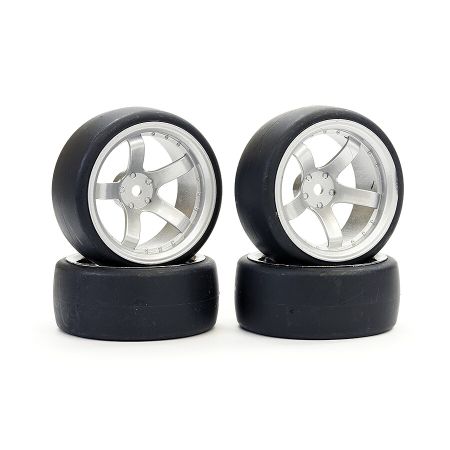 - Fastrax 1:10 Drift D1 Tyre 9mm Off Set 5 Spoke Wheel Satin Silver (FAST1354SS-D19)