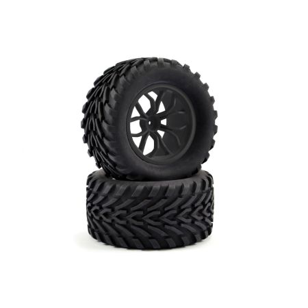 Fastrax 1:10 Mega V Truck Tyre 12 Spoke Black Wheel 12mm Hex (Pr)