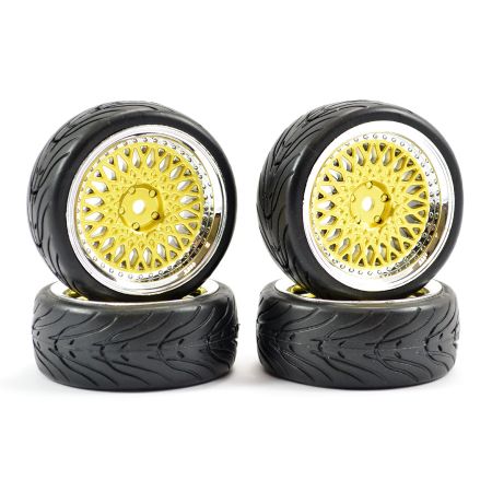 Fastrax 1:10 Street Wheel / Thread Tyres Classic Gold/Chrome (4)