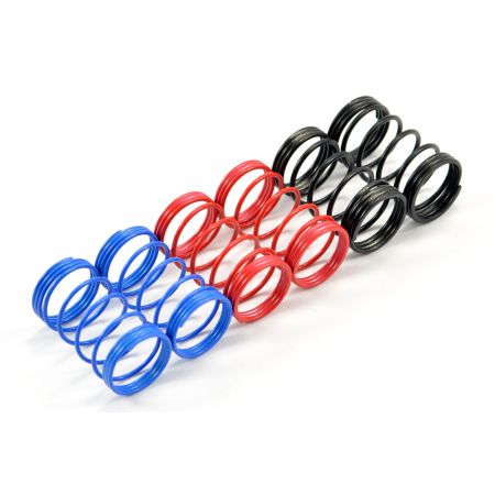 3-piece spring set. Blue/Soft, Red/Medium, Black/Hard.