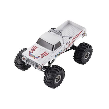 The FMS 1/24 Bigfoot model SMASHER adopts the FCX24 chassis. The car body design restores the appearance of a first-generation American pickup truck. The huge hollow tires provide excellent shock absorption. The two-speed gearbox, controlled by the third channel, can not only provide strong torque, but also support high-speed off-road driving. The front and rear axles are equipped with planetary gear differentials by default, which is conducive to high-speed off-road driving, posture simulation and outstanding cornering performance. Meanwhile, straight axle parts without differentials are also provided for users to replace by themselves. When the straight axle parts are replaced, the differential function of the front and rear axles is lost but its climbing ability is completely released, and no matter whether it is rocks or mud, it can pass through powerfully. Of course, the hybrid solution of installing a straight axle on the rear axle and installing a differential on the front axle is also an option, which not only enables high-speed off-roading, but also retains a certain climbing ability.