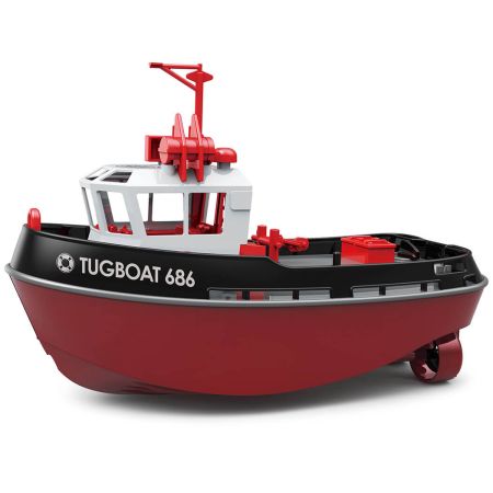 An authentic tug hull design is available in a green or black finish and features a sealed waterproof centre section for electronics and 3.7V 600mAH battery, which provides up to 15 minutes of uninterrupted playtime. 2.4GHz radio system delivers interference-free control with a range of up to 50m. At 23cm in length, it’s pocketed sized for easy portability and display.