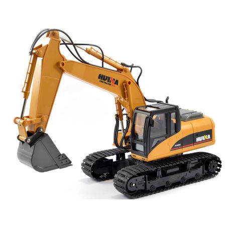 The HuiNa 15-Channel 2.4G Excavator is a 1/14 scale model of a real excavator that works just like the real thing. The bucket, cab and wheel hubs are all made of hard metal alloy for durability, while the rubber tread resist slip and wear, making it possible to climb effortlessly.