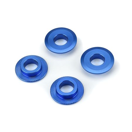 This is a set of four (4) Billet Adapter Washers for Raid 5.7" 24mm wheels and other 1/5 Wheel Fitments on X-MAXX®. Do you need replacement adapter washers for your Pro-Line Raid 5.7" X-MAXX® Wheels? This set includes 4 blue anodized wheel washers to reduce the through-hole size on the Raid wheel down to fit the X-MAXX® sized axles. These also allow X-MAXX® users to mount other popular 1/5 scale wheels on their rigs.