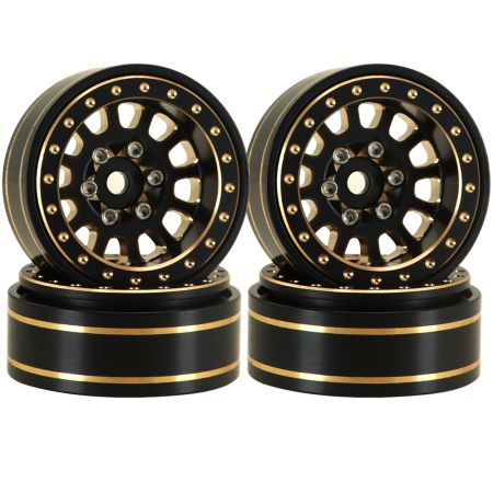 SC Models 1.1" Brass Beadlock Wheels (4) Fits SCX24 - Black/Gold (SCDTW42027)