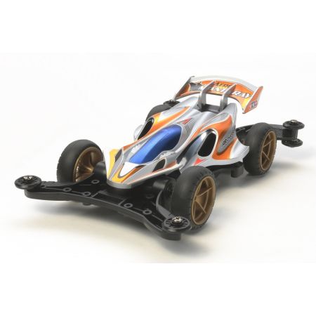 The AR chassis is designed to offer its driver durability, customizability and ease of maintenance, all of which are vital ingredients for a successful Mini 4WD racer. Its aerodynamic form smoothly allows air to pass through the chassis interior as the machine runs, performing the vital function of cooling the batteries and motor and extending their effectiveness. The air intakes on the chassis and body are integrated for optimal performance. This high-speed racing chassis also features low-friction plastic bearings to ensure that any loss of power from the engine to the wheels is minimal in nature. The under-panel and diffuser can be removed from the model without taking off the body, while a low-friction rear skid bar is fitted to slash time loss experienced on tricky slope sections, and keep the racer on the track where it belongs. Features a 4.2:1 gear ratio.