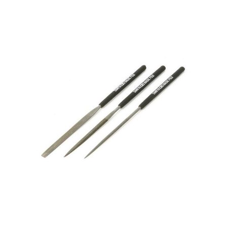 This set of 3 files includes flat, hemispherical and round files for use in the construction of plastic models, Mini 4WD models, and even for metal-working.