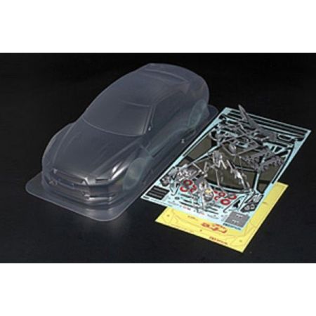 This set includes an accurately reproduced poly carbonate body for the Nissan GT-R . Comes with a light case for possible front and rear LED lights. The most light connections available with the set: 5mm LED (four lights), 3mm LED (four lights).