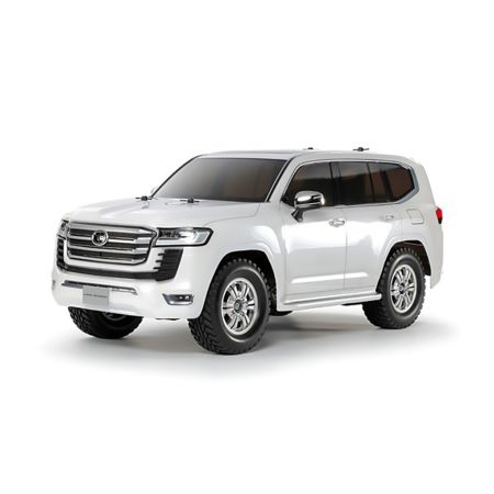 Since the first generation model release in 1951, the Toyota Land Cruiser has been one of the most famous 4WD vehicles in the world. This R/C model assembly kit recreates the Land Cruiser 300 series announced in 2021. The polycarbonate body realistically depicts the eye-catching, dignified form with separate parts to capture the distinctive large front grille's horizontal fins and metal-plated sections. Light case and door mirror components are metal-plated, and door handles and shark fin antenna on the roof are rendered by separate parts for more realism. Silver colour 12-spoke wheels are paired with block pattern tyres.