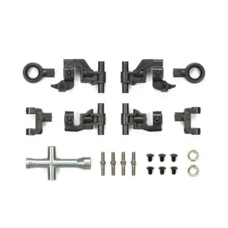 These are adjustable upper arms that can be used on any variant of the TT-02 chassis. The parts allow you to add or decrease wheel camber. Adding camber for racing purposes allows the car to alter its traction characteristics under turning and cornering.
