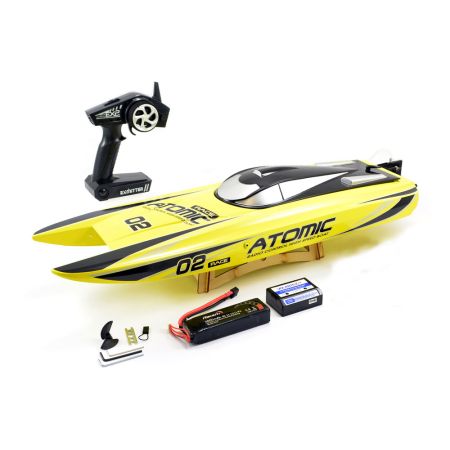 Fast and sleek the Atomic catamaran is perfect for boat fans looking for an affordable, electric brushless fast racing boat to take on the open water.