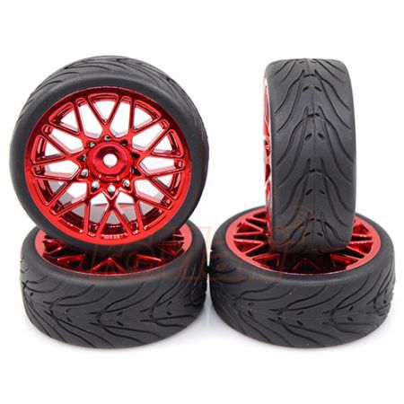 Yeah Racing 1:10 Spec T LS Wheel Offset +3 Red Chrome w/ Tire 4pcs (WL-0108)