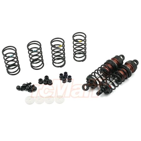 Big Bore Go! Purchase this set of big bore shocks, add oil and off you go! Includes two different types of mounting pillow ball studs for different types of cars! Included are different springs for you to fine tune your ride so you don't have to go looking for different springs after purchasing our set of shocks! If you really want to get serious with tuning, there are different holes of pistons included so you can adjust the how the shock reacts to the shock oil.